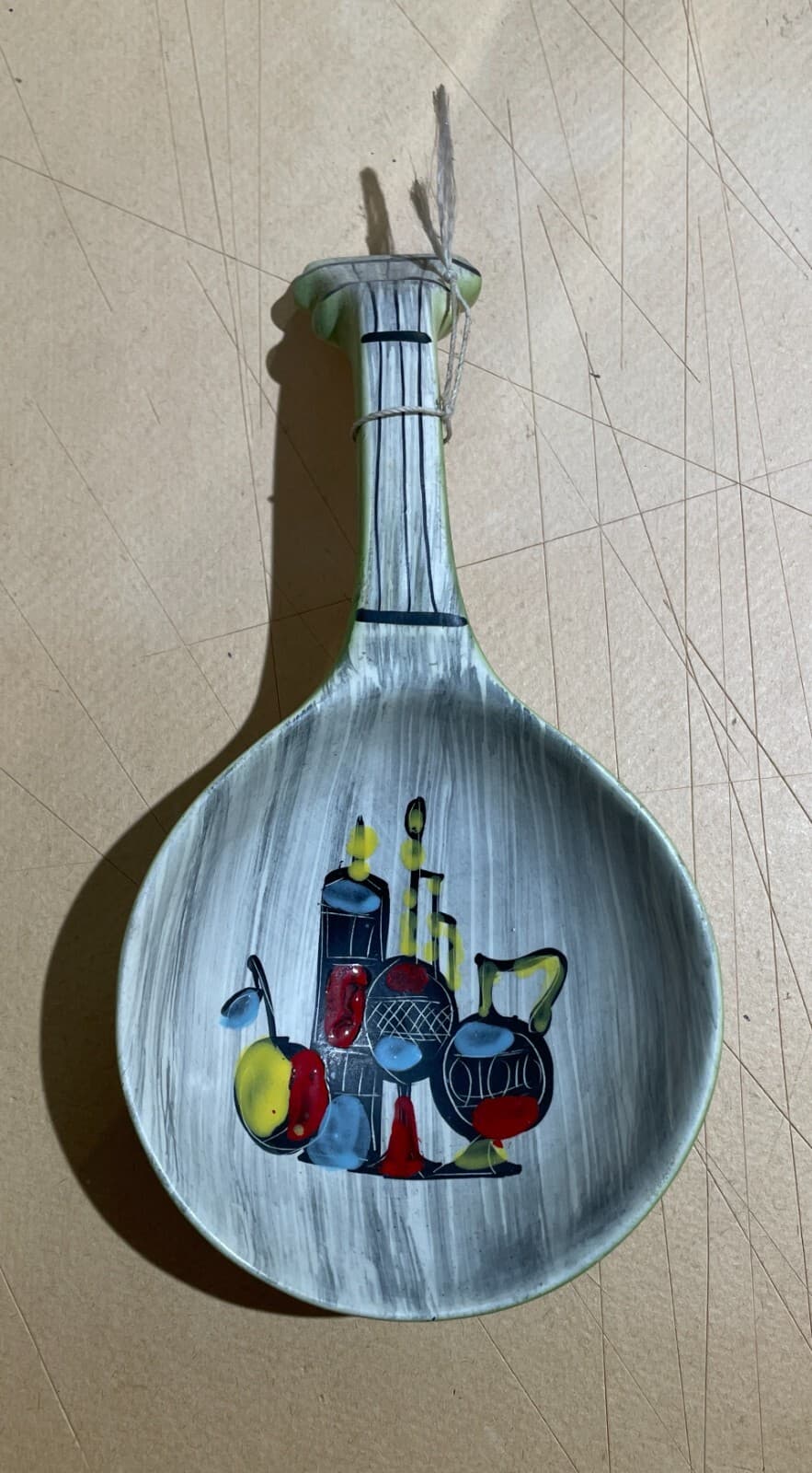 Ceramica Artistica A Forma Di Chitarra Con Natura Morta