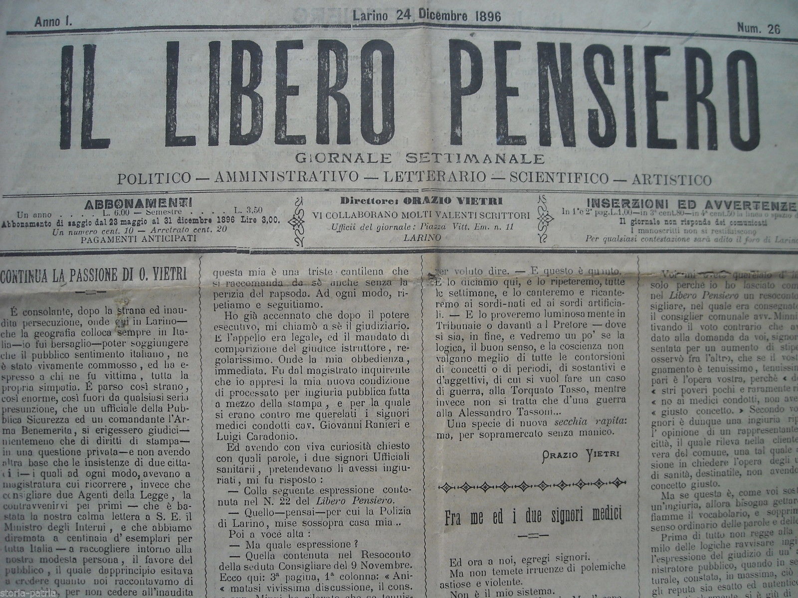 Molise, Larino, Campobasso, Castelleone, Telegrafo, Medicina, Libero Pensiero, Vietri