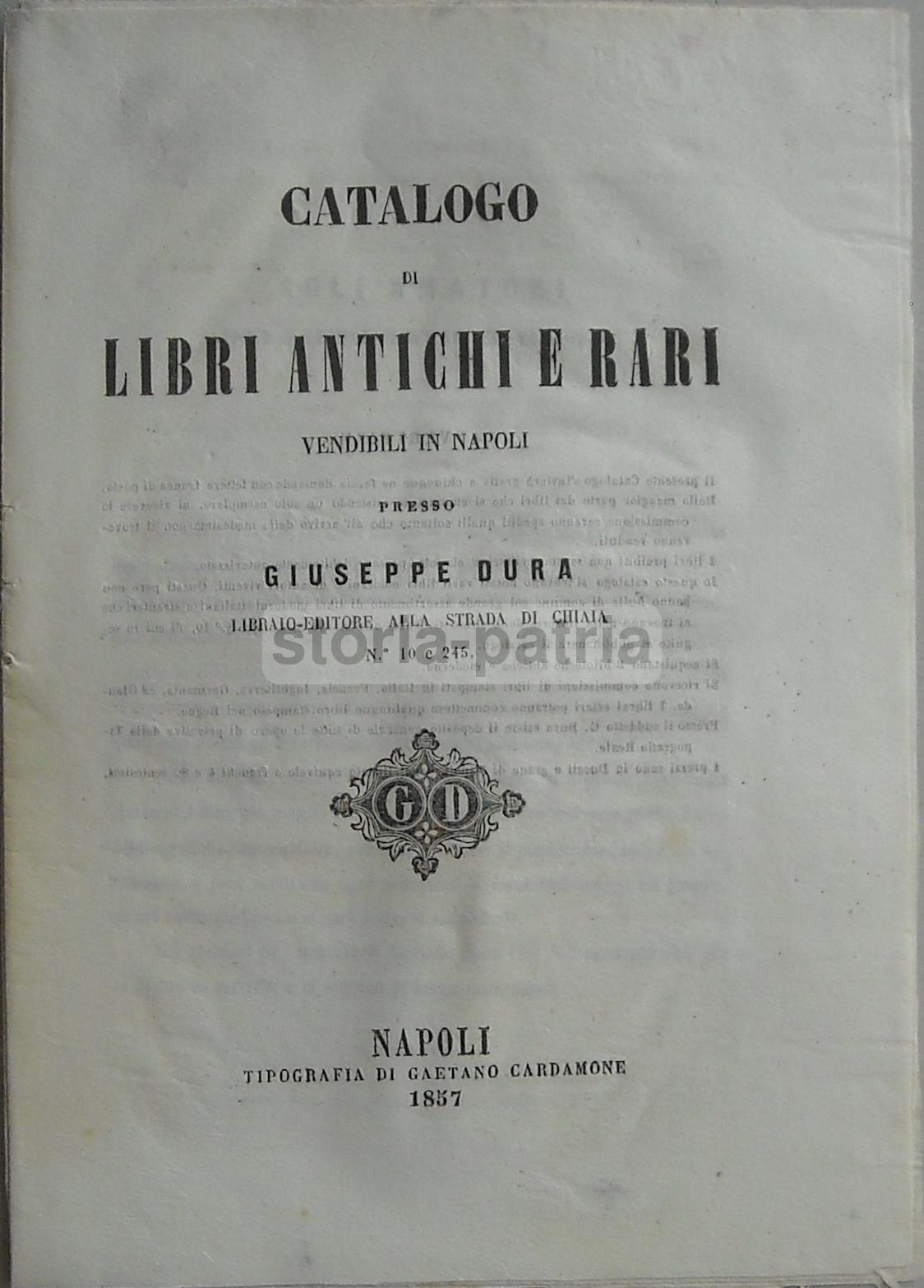 Bibliografia, Bibliofilia, Libri Antichi Di Varia Cultura, Napoli, Libreria Dura, 800