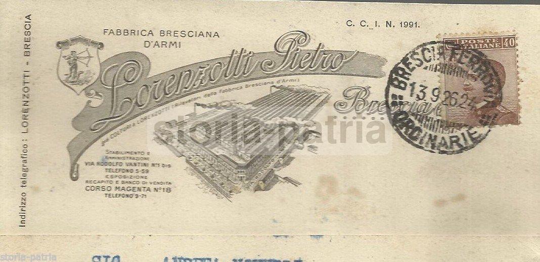 Caccia, Tiro, Armeria Pietro Lorenzotti, Brescia, Veduta Stabilimento, Filatelia, 1926