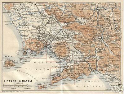 Campania, Penisola Di Sorrento, Antica Mappa Geografica