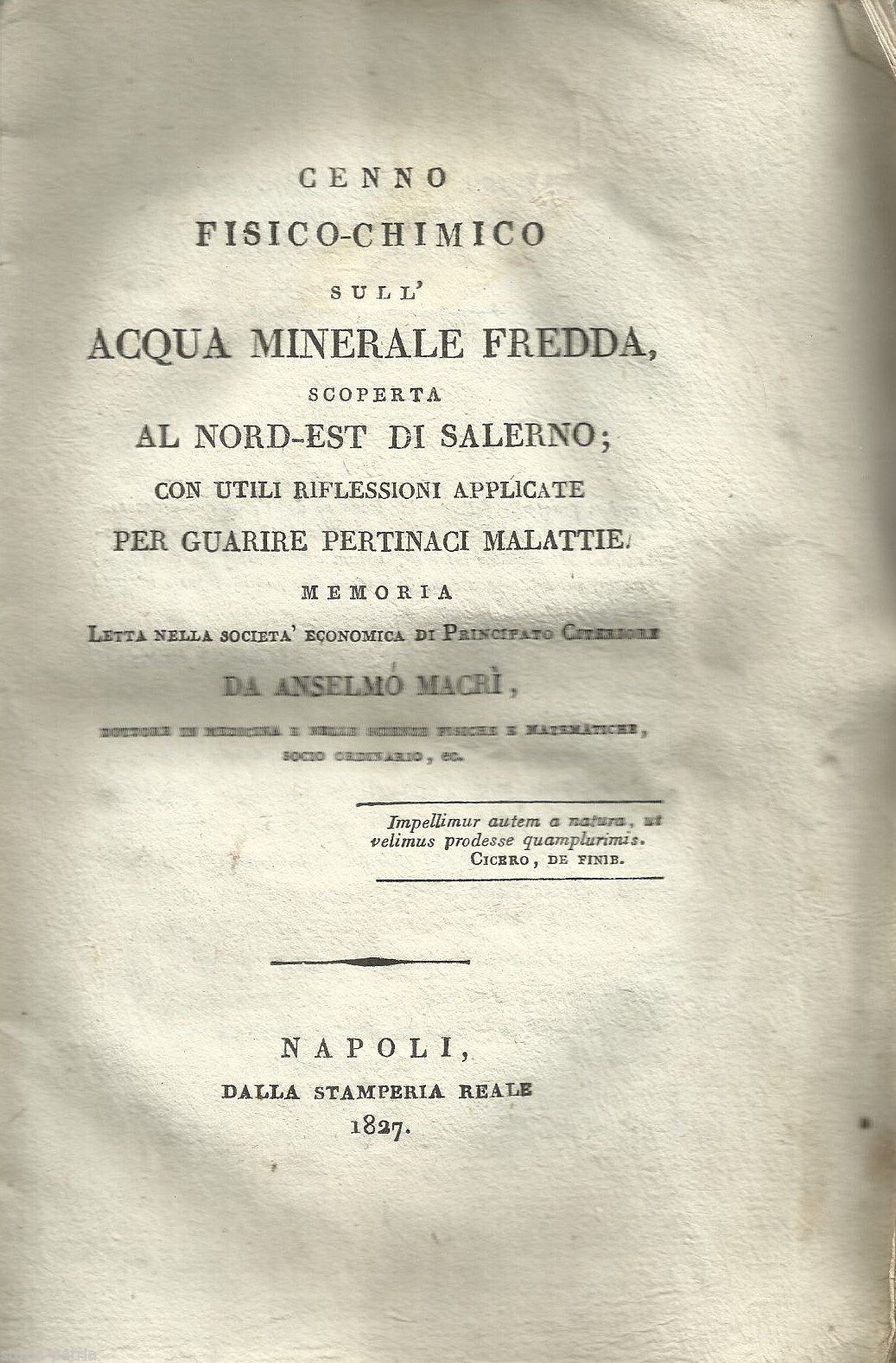 Campania, Salerno, Medicina, Chimica, Acque Minerali, Macri, Antica Rara Edizione, 800