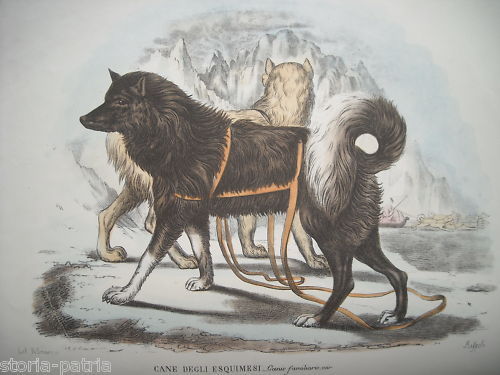 Cane Degli Esquimesi, Bella Antica Litografia A Colori