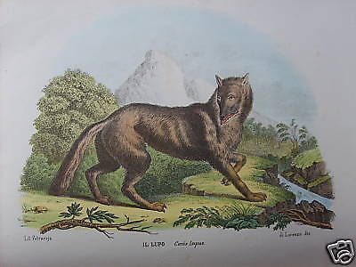 Cane Lupo, Bellissima Stampa Colorata Dell800, d'Epoca