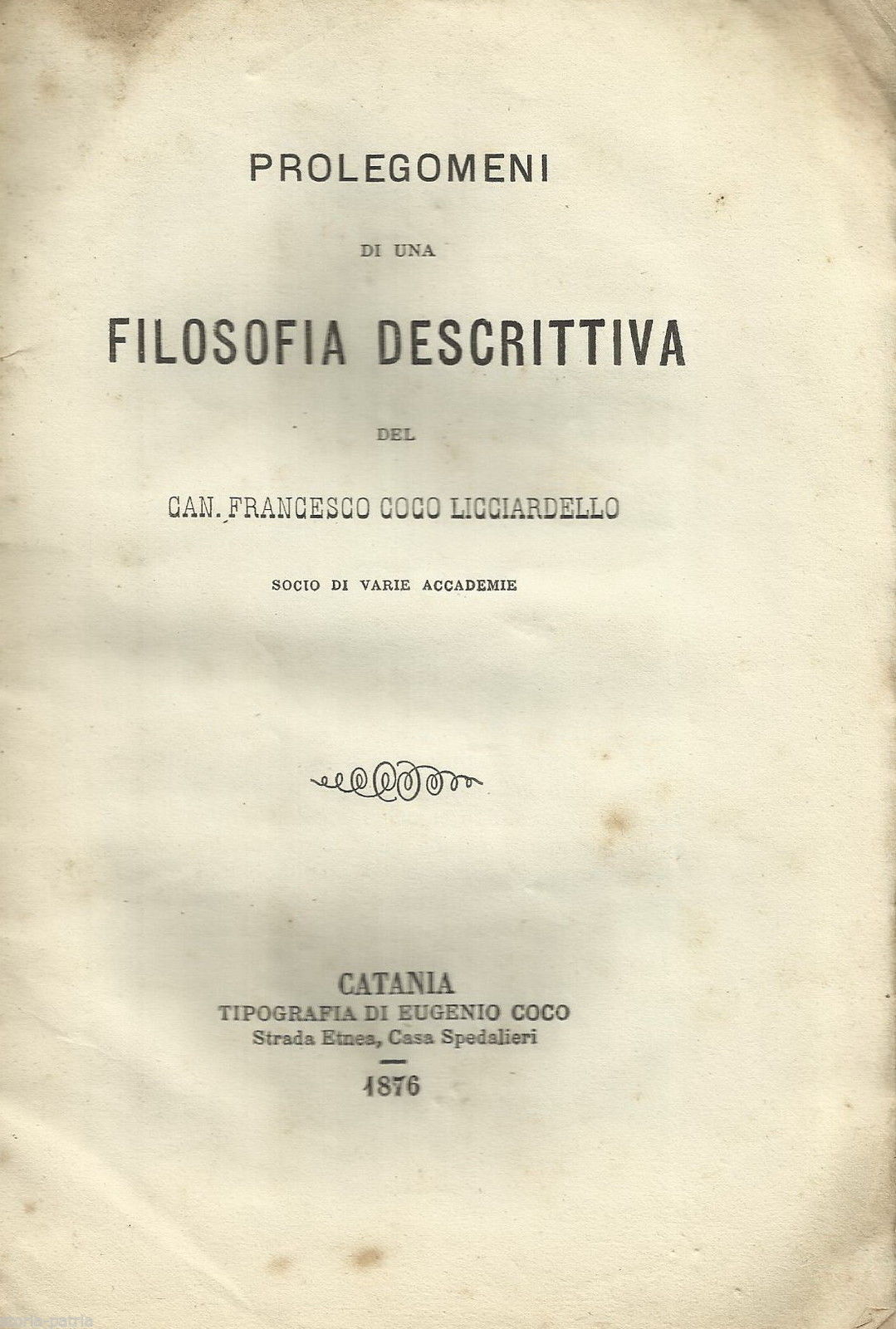 Filosofia Descrittiva, Coco Licciardello, Antica Rara Edizione, Sicilia, Catania, 800