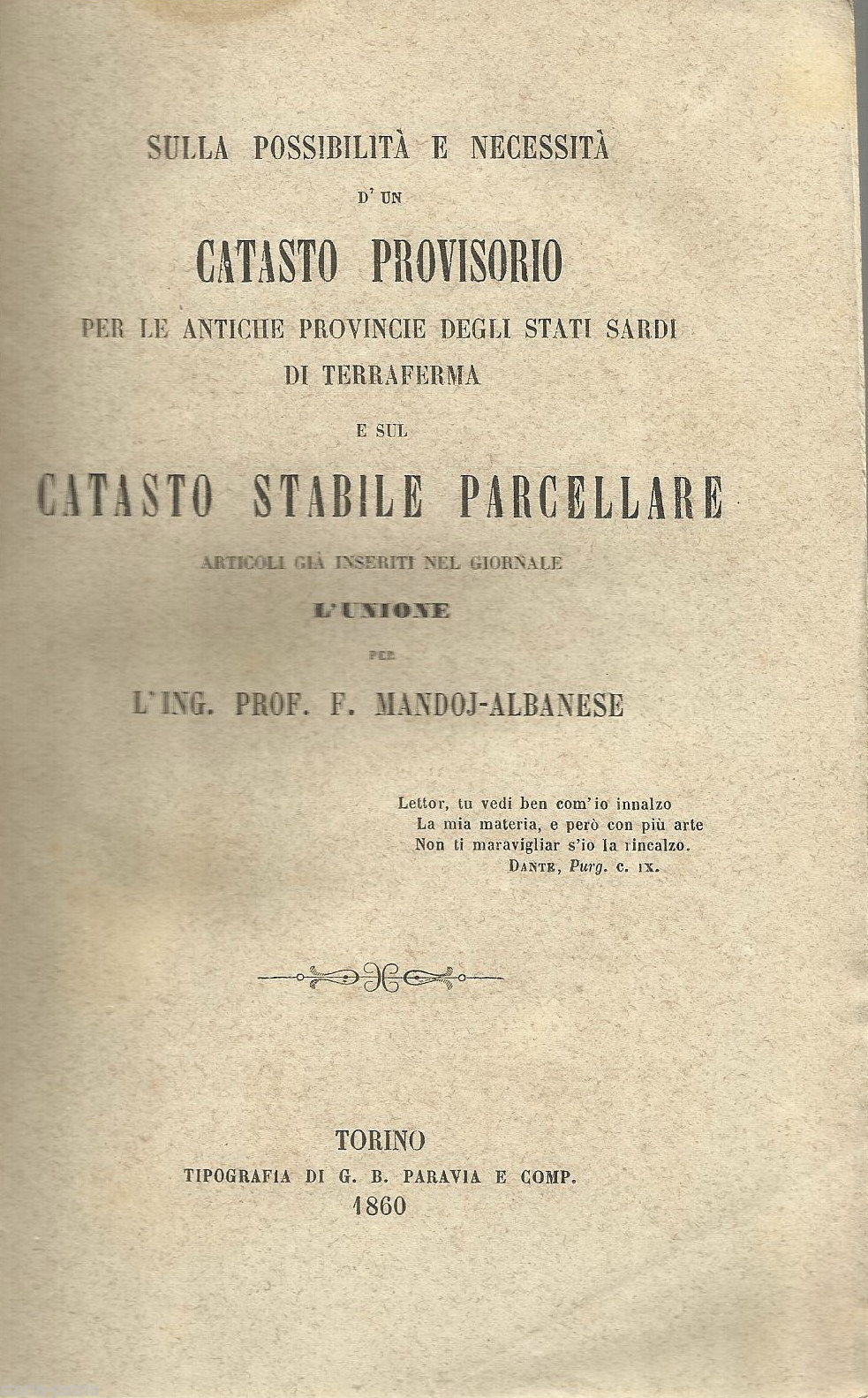 Giuridica, Catasto Sardo, Ingegneria, Topografia, Piemonte, Mandoj Albanese, 1860