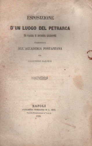 Letteratura, Filologia, Petrarca, Madonna Laura, Canzoniere, Rarita, Leopardi, Napoli