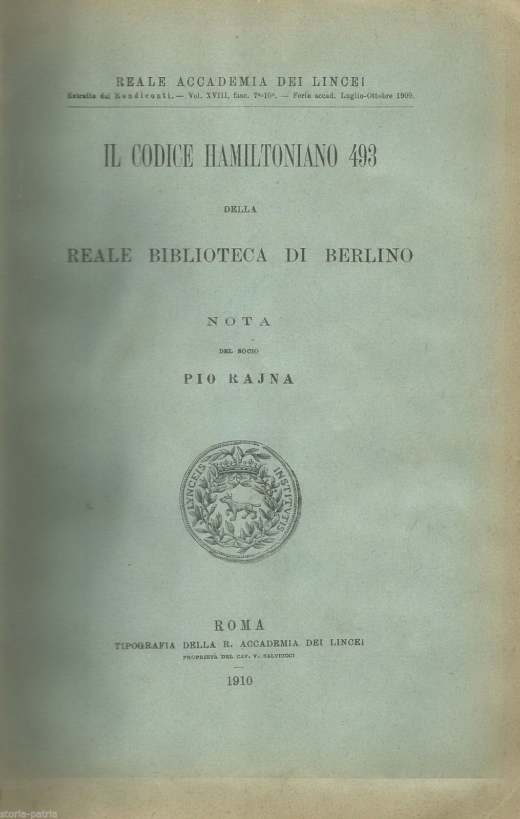 Letteratura, Filologia, Petrarca, Codice Hamiltoniano 493, Berlino, Rajna, Firenze, 10