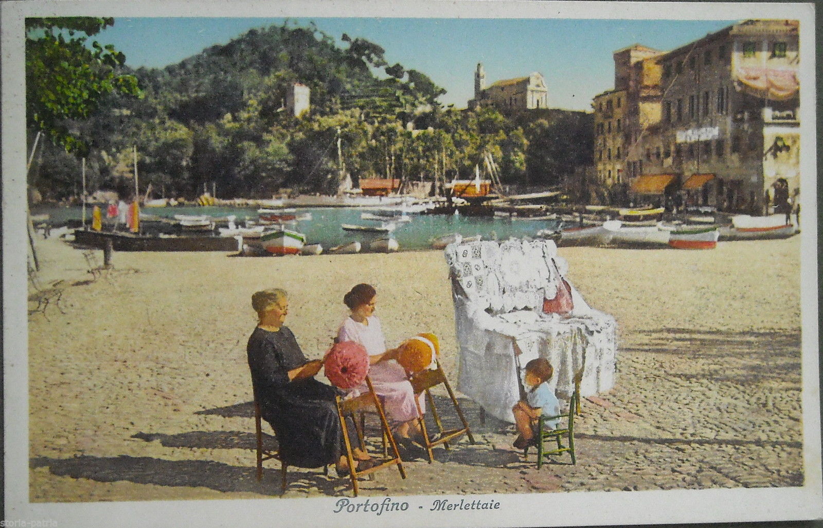 Liguria, Portofino, Bella Veduta Panoramica, Folklore, Ricamatrici, Merlettaie, Colore