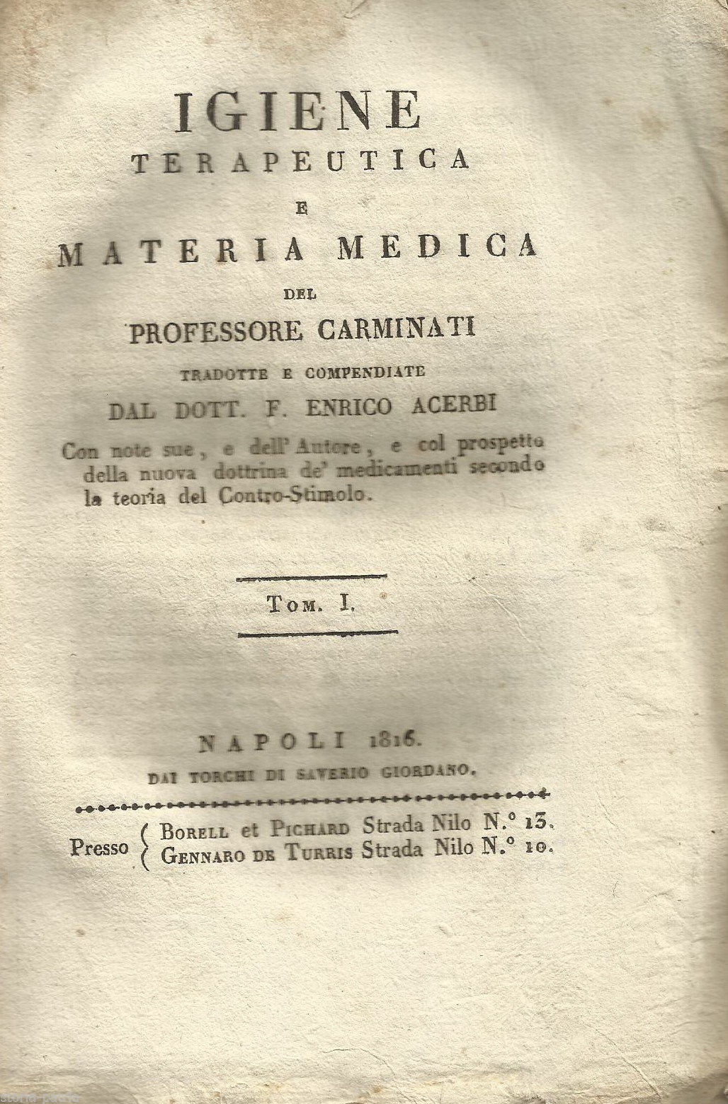 Medicina, Igiene, Farmacologia, Clima, Passioni, Alimenti, Purganti, Salasso, Carminati