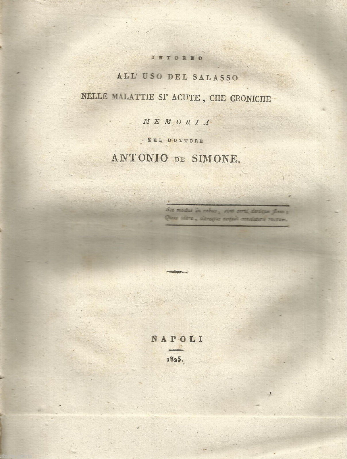 Medicina, Salasso, Sanguisughe, Mignatte, Febbri, Emorroidi, De Simone, Rara Edizione