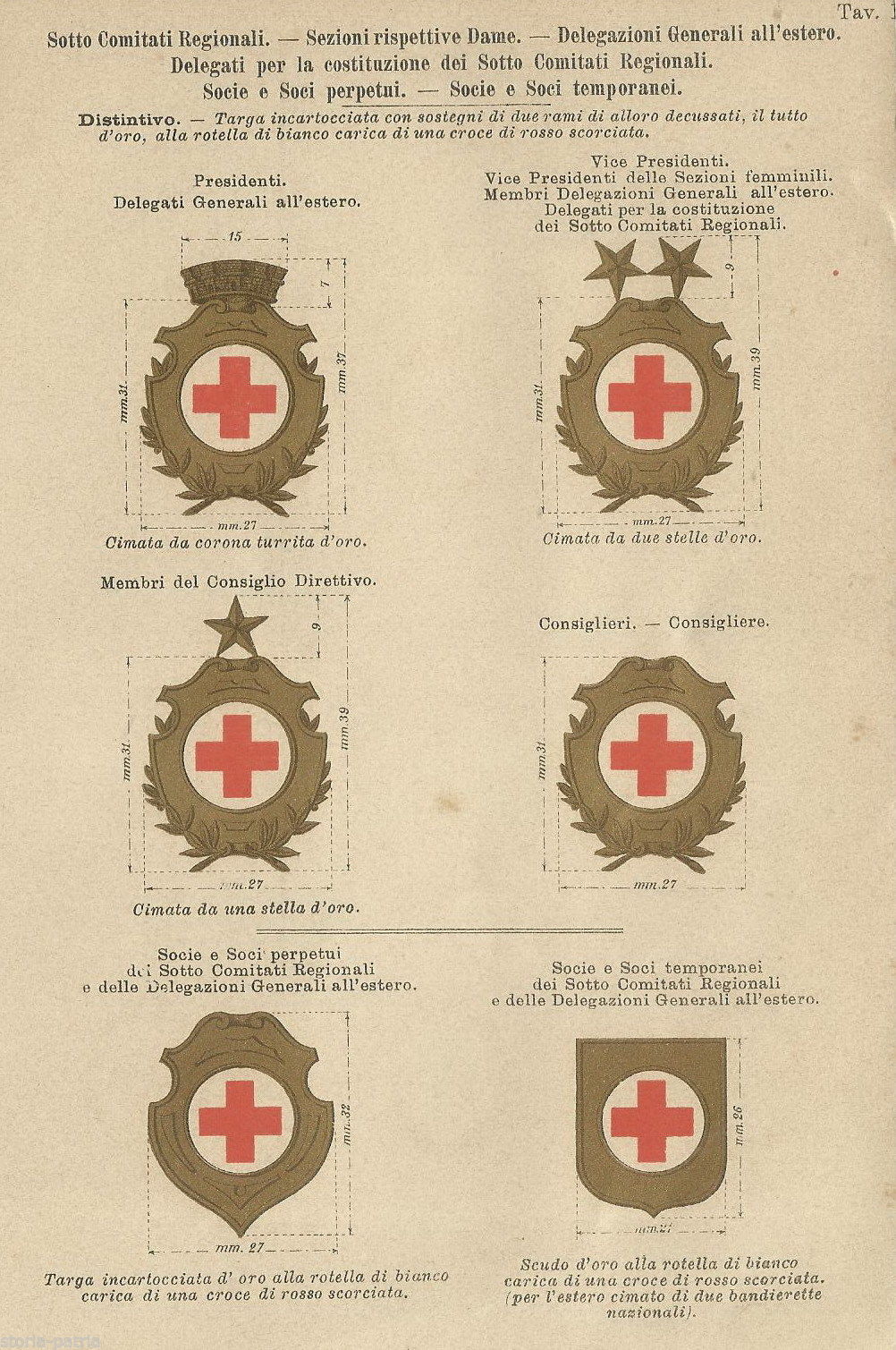 Medicina, Sanitaria, Araldica, Croce Rossa Italiana, Stampa, Distintivi Per Associati