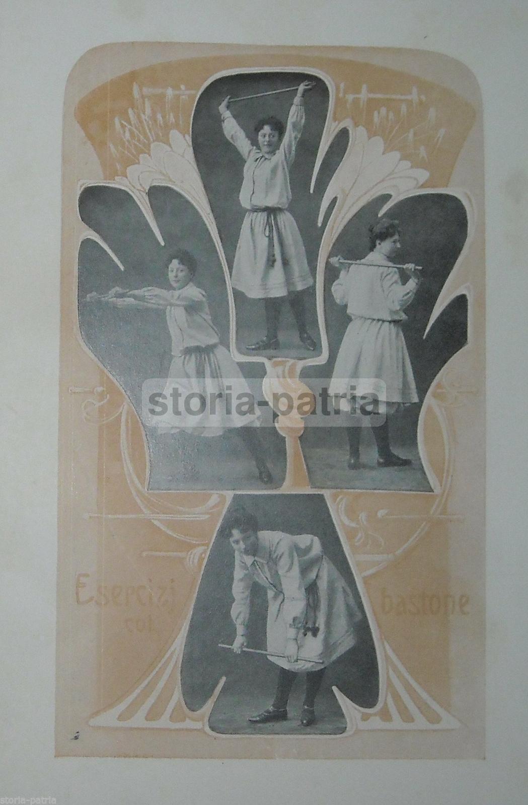 Medicina, Sport, Ginnastica Femminile, Esercizi Col Bastone, Fascinosa Antica Stampa