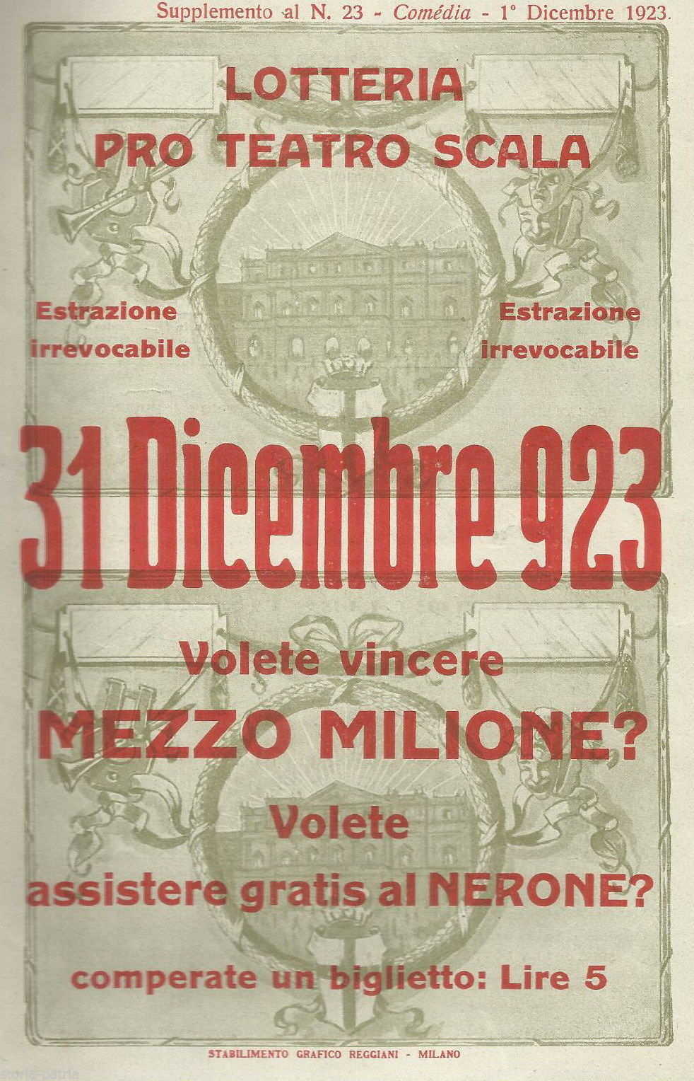 Milano, Teatro Alla Scala, Lotteria, Antica Stampa Pubblicitaria, Spettacolo Nerone