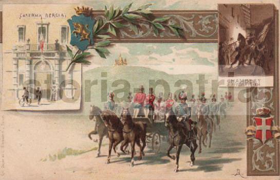 Militaria, Caserma Bergia, Chambery, Bellissima Cromolito, Cartolina d'Epoca, Torino