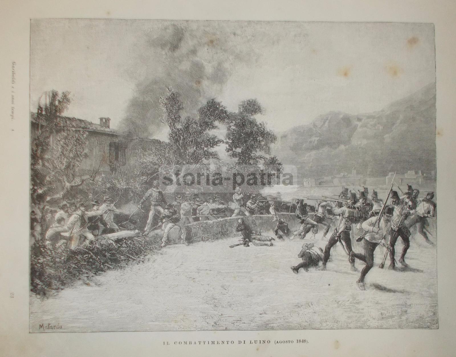 Militaria, Risorgimento, Garibaldini, Battaglia Di Luino, Antica Stampa, Matania, Arte