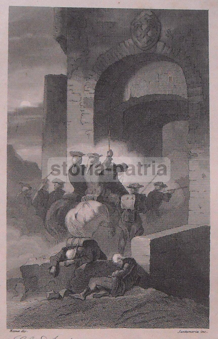 Militaria, Velletri, Antica Stampa, Incisione Decorativa, Artisti Santamaria E Mazza