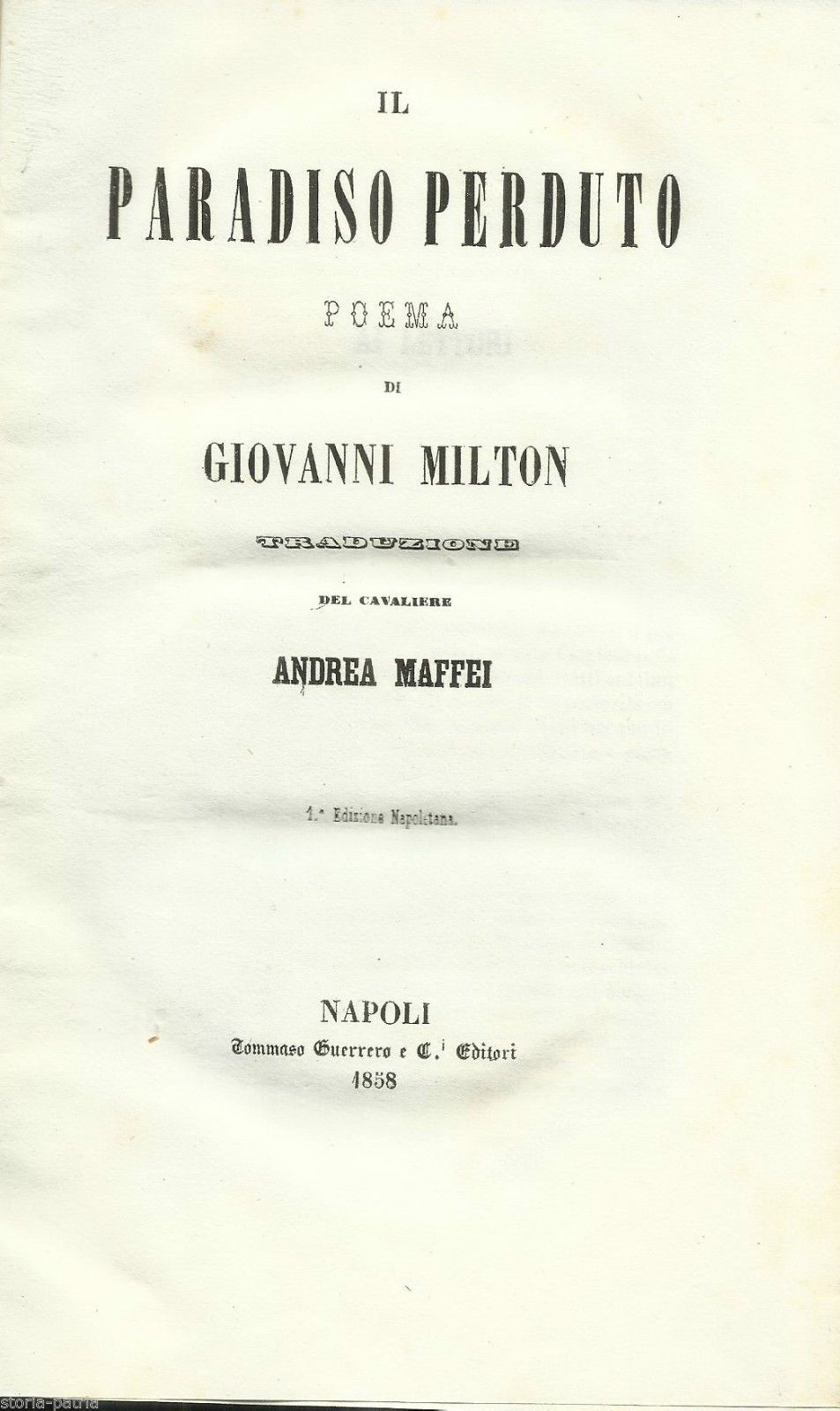 Milton, Maffei, Baffi, Prudenzano, Klopstock, Riva Di Trento, Napoli, Guerrero, 1858