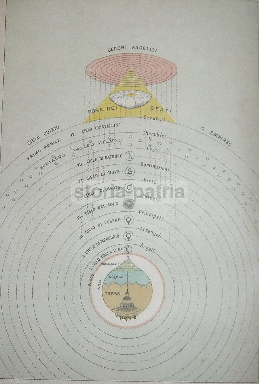 Antica Allegoria, Bella Illustrazione A Colori, Paradiso, Pianeti, Cerchi Angelici