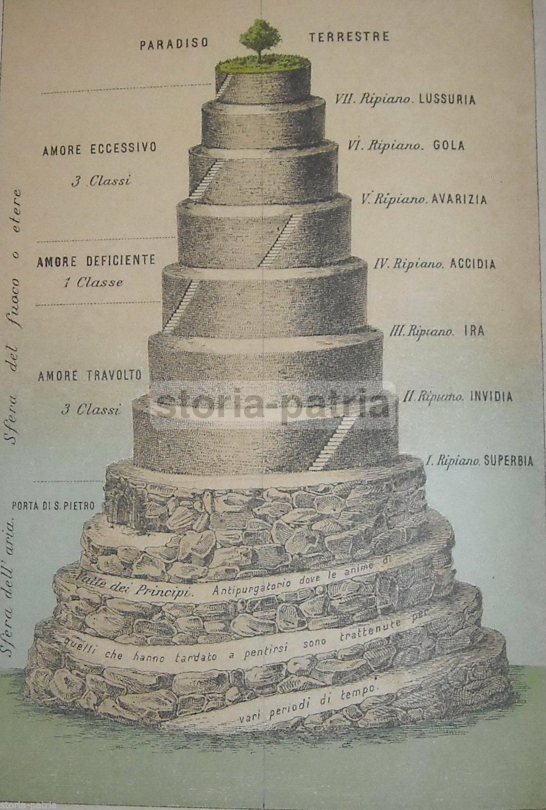 Antica Allegoria, Bella Illustrazione, Decorativa, Da Collezione, Dante, Purgatorio