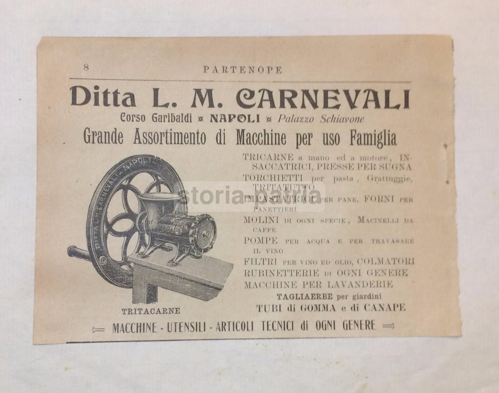 Napoli, Antica Pubblicitaria, Tecnica, Trita Carne, Pompe, Molini, Ditta Carnevali