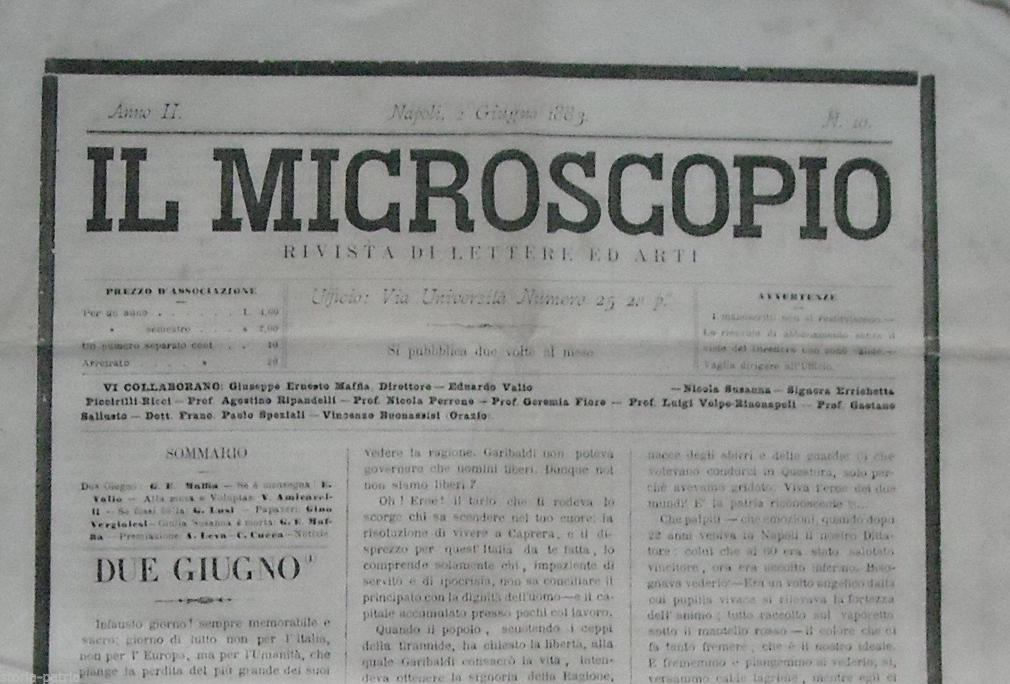 Napoli, Antico Raro Giornale Letterario Artistico, Microscopio, Maffia, Valio, 1883