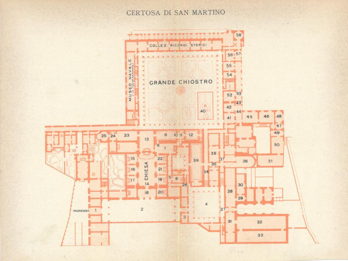Napoli, Architettura, Certosa Di San Martino, Antica Pianta Topografica, Decorativa