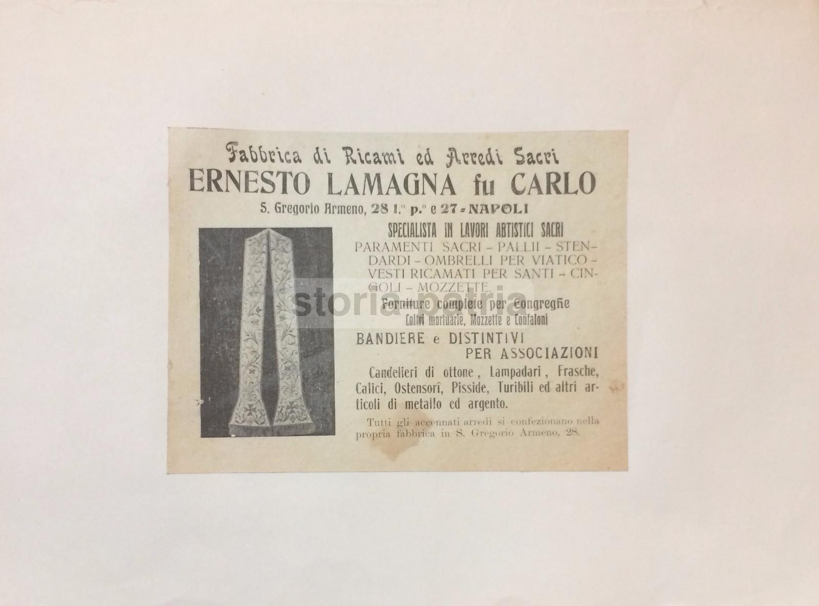 Napoli, Tessuti, Ricami Artistici, Paramenti, Vesti Ricamate, Bandiere, Ditta Lamagna