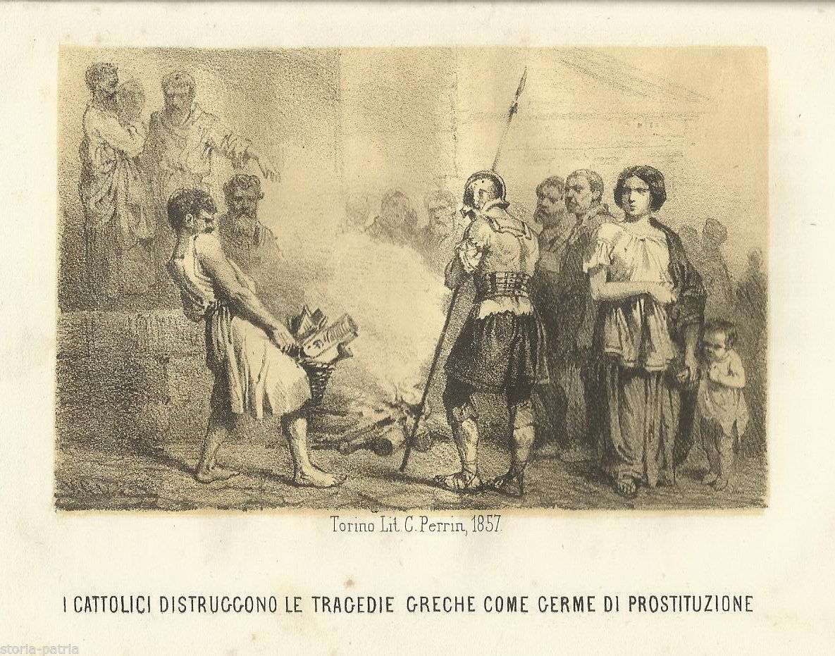 Prostituzione, Cattolicesimo, Tragedie Greche, Antica Litografia, Torino, Doyen, 1857