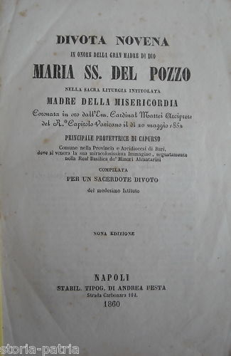 Puglia, Bari, Capurso, Cardinale Mattei, Madonna Del Pozzo, Edizione Devozionale, 1860