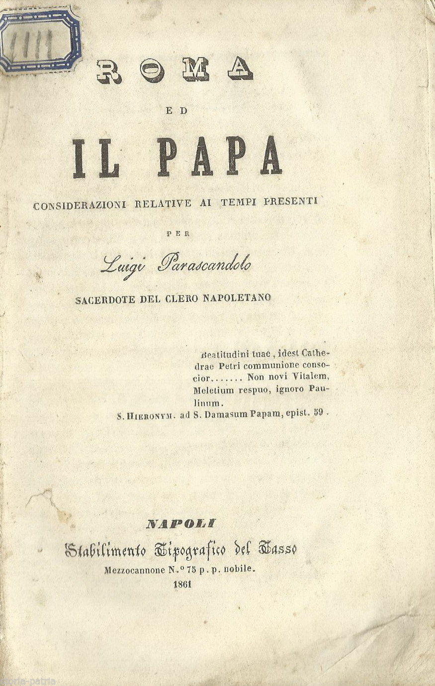 Roma, Papato, Potere Temporale, Papa Re, Parascandolo, Chiesa Di Napoli, 1861, Rarita