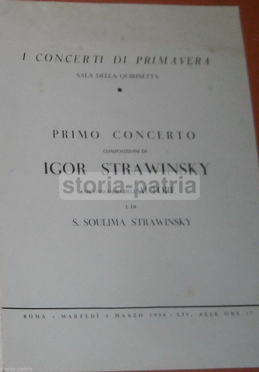 Roma, Quirinetta, Musica, Concerti, Igor E Soulima Strawinsky, 1936, Raro Volantino