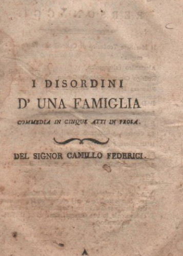 Teatro, Federici, I Disordini Di Una Famiglia, Rarita, 800
