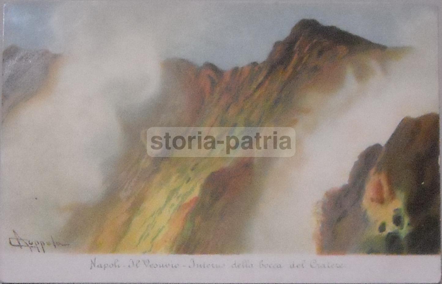 Arte, Artista Coppola, Veduta Napoletana, Vesuvio, Geologia, Interno Cratere, Stampa