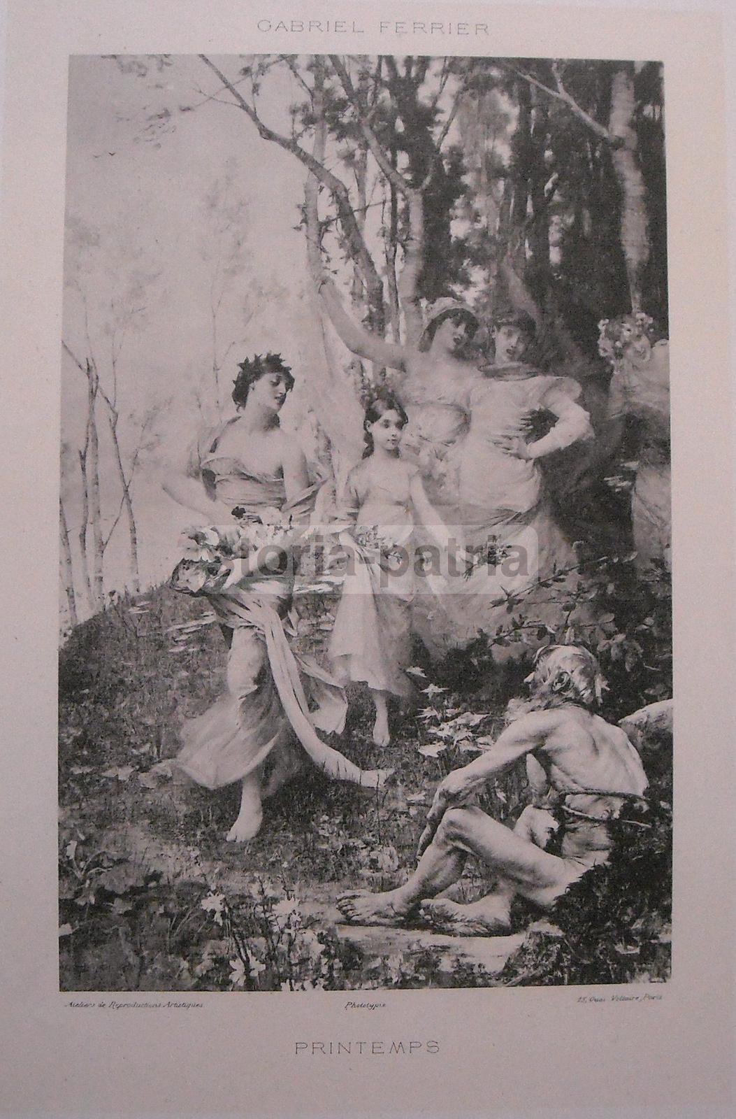 Arte, Artista Ferrier, Bella Antica Allegoria, Giovani Donne In Paesaggio Floreale