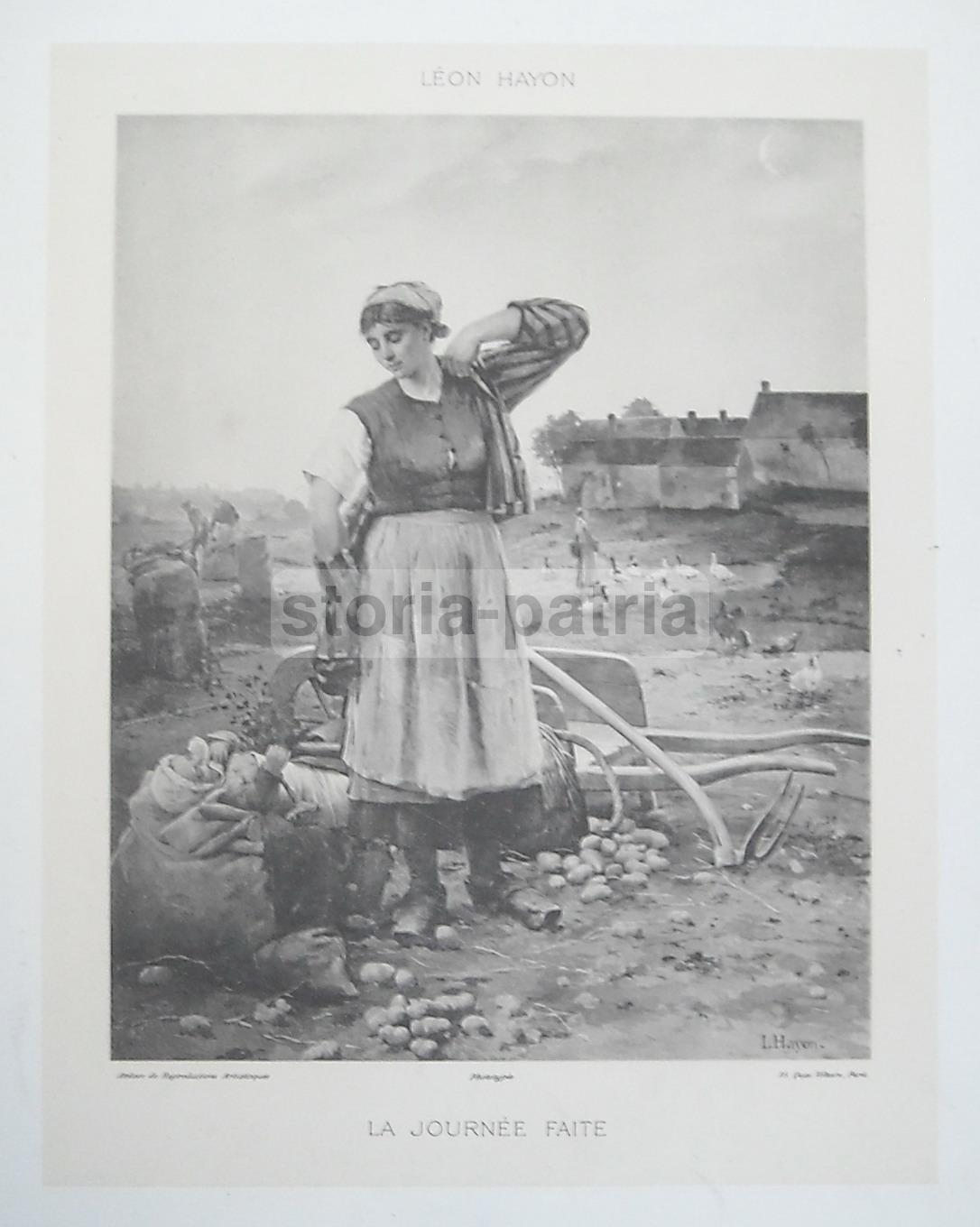 Arte, Artista Hayon, Bella Veduta Folklorica, Fattoria, Contadina Con Neonato, Stampa