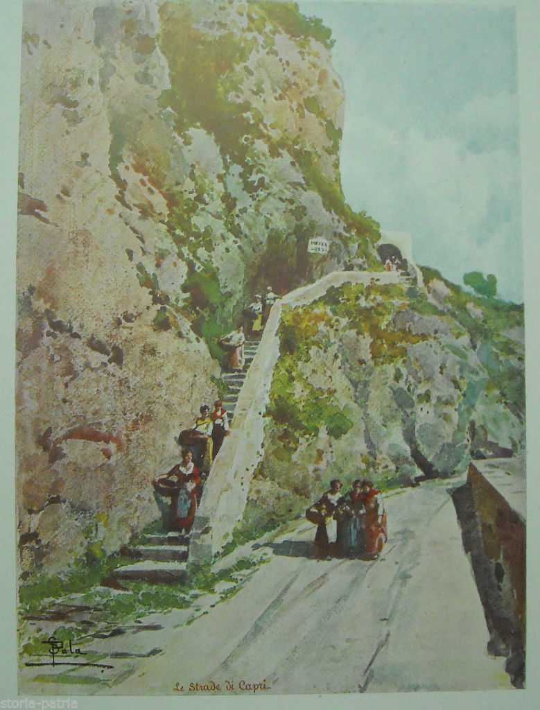 Arte Dellottocento, Sala, Folklore, Capri, Bella Veduta Con Popolane, Decorativa