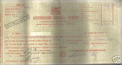Assicurazioni Generali, Rara Antica Quietanza, Anni 40
