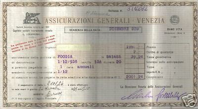 Assicurazioni Generali, Vecchia Quietanza, Anni 40