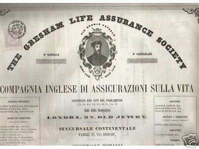 Assicurazioni, Gresham Assurance, Londra, Rara Polizza