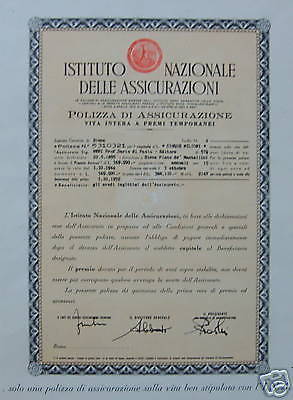 Assicurazioni, Ina, Facsimile Di Polizza Vita, Stampa Pubblicitaria, Da Collezione