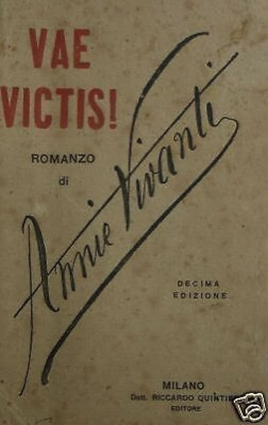 **Annie Vivanti** Vae Victis Milano, Quintieri, 1924 Cm.19,5; pp.349; bross. edit. (difetti) Interessante opera della nota scrittrice, libro che la stampa dell'epoca definì: *"il più tragico e memorabile dei romanzi....un libro veramente terribile e veramente potente........l'agonia del Belgio..."* Di interesse letterario, culturale e bibliografico Discreta conservazione generale, difetti d'uso e d'epoca, copertine sciupate. Della stessa autrice sono anche disponibili altre opere, tra cui *I divoratori (Ed. Mondadori, 1949)* *Mea culpa (Ed. Mondadori, 1927)* ....... *(a richiesta ulteriori informazioni)* Osservate le altre mie aste! Creato da [Turbo Lister](https://pages.ebay.it/turbo_lister/)
