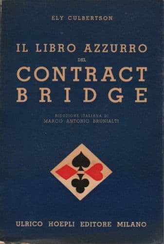 Ely Culbertson Il libro azzurro del Contract Bridge Milano, Hoepli, 1934 Cm. 19, pp. 422, bross. edit.figurata (difetti) Interessante edizione antica e d'epoca, bel volume specialistico impresso a cura del noto editore milanese Hoepli, nella riduzione italiana del Brunialti, con all'interno ampia specifica trattazione della quale non è possibile dare una esauriente sintesi, ma con riferimenti e capitoli su: *Valutazione della dichiarazione* *Calcolo della distribuzione* *Valutazione plastica* *.....* *Il linguaggio tra compagni* *Le otto situazioni a forzare* *....* *Distribuzione ed alta strategia* *La psicologia del bridge* *Tattiche...nascondere la propria forza agli avversari* *....* Con alcune figure illustrative Di interesse culturale, specialistico, bibliografico e collezionistico Buona conservazione generale, segni e difetti d'uso e d'epoca, sparse fioriture. [](https://pages.ebay.it/turbo_lister/)