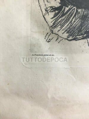 **Dopo Morta** (Risposta ad **Abele Mancini**). Melodia per canto. Parole di... Musica di **Maria Lobello Perisi** di *Melfi*. * **Editore**: Roma, S. Consorti. * **Data**: s.d. (circa 1874, datato Firenze 1874 all'interno). * **Dimensioni**: cm 35x25 circa. * **Pagine**: 8, senza legatura. Interessante edizione antica d'epoca, raro spartito musicale, con la prima pagina (ad uso frontespizio) impressa in litografia con dorature e decori floreali. All'interno il testo del componimento musicale e la musica a stampa su quattro pagine. In basso, al centro in prima pagina, sono visibili insegne araldiche probabilmente relative allo stampatore romano **Consorti**. **Stato di conservazione**: Discreta conservazione generale, segni e difetti d'uso e d'epoca, diffuse fioriture, bruniture e sgualciture marginali.