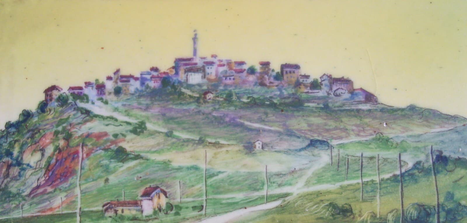 Antica Veduta Con Prospetto Di Teatro. Antica Incisione.