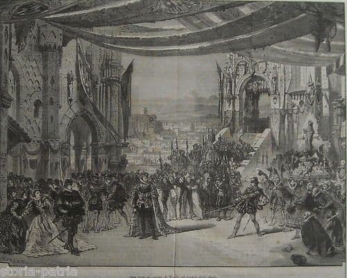 Don Carlos *Opera di Verdi* *al Teatro della Scala* Interessante antica veduta scenografica, con il palcoscenico del Teatro della Scala di Milano, durante un momento della rappresentazione dell'opera di Giuseppe Verdi, Don Carlos, *veduta animatissima per le numerose comparse, e per i ricchi addobbi, con in lontananza visibile anche la prospettiva panoramica di una città;* incisione antica xilografica, misura circa cm. 23x30 (la sola parte figurata, rifilata, esclusi i margini bianchi), firmata su stampa in basso a sinistra Maurand; stampa edita in origine quale illustrazione nel testo di una pubblicazione o un periodico della fine dell'800. Di interesse artistico, teatrale, architettonico, collezionistico, decorativo Buona conservazione generale, segni e difetti d'uso e d'epoca, piegature o sgualciture, foglio estratto dalla pubblicazione dell'epoca e pertanto con scritte impresse anche al verso; stampa attualmente inserita e chiusa o sigillata sotto un passpartout in cartoncino leggero, di circa cm.35,5x41,5 eventualmente rimovibile nel caso la si voglia incorniciare in modo diverso, comunque già pronta per essere incornciata. *(le immagini allegate raffigurano un particolare dell'intero foglio, e la stampa così come è attualmente sotto passpartout)* [](https://imageshack.us/photo/my-images/69/scala9a.jpg/ "ImageShack - Image And Video Hosting")[](https://imageshack.us/photo/my-images/269/scala9ac.jpg/ "ImageShack - Image And Video Hosting")Uploaded with [ImageShack.us](https://imageshack.us/)