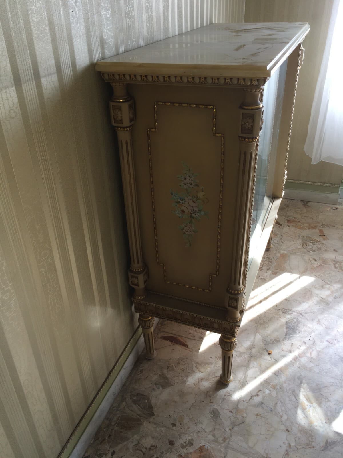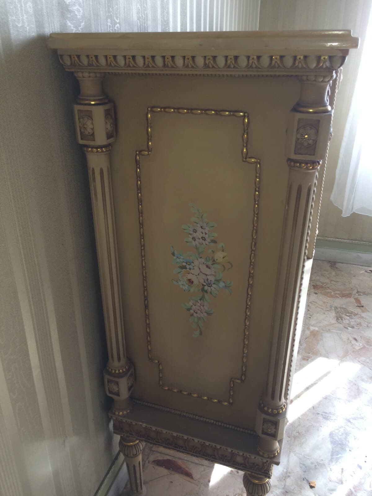 Interessante soprammobile in ceramica modellata a forma di cestino, impreziosito da una decorazione a motivi paesaggistici e floreali. L'opera raffigura due vedute marine e mazzetti di fiori, di cui uno applicato in rilievo all'estremità del manico. * **Manifattura**: **La Berica** (*Vicenza*). * **Stile**: Produzione affine alla sensibilità artistica di **Lenci**. * **Dimensioni**: 19x12 cm; altezza 16 cm circa. * **Periodo**: Prima metà del XX secolo. **Stato di conservazione**: L'oggetto si presenta in discreto stato generale. Si segnalano segni di usura, sparse abrasioni superficiali e una rottura localizzata sul nastro in rilievo laterale (restaurabile).