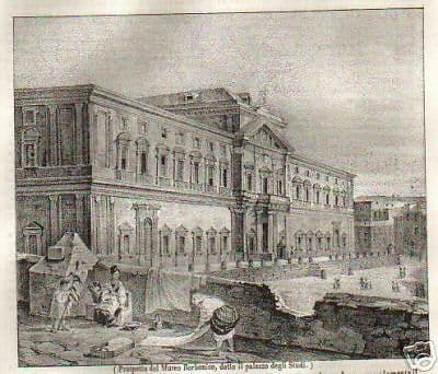 Veduta Antica Di Napoli Con Museo Borbonico Litografia 1839