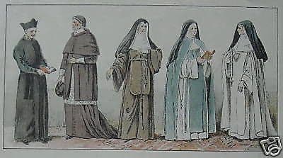 Stampa Litografica Abiti Religiosi 1400 1800 Fine 800 Tilke