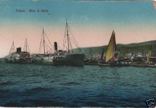 Trieste *Molo S. Carlo* *Bella veduta del litorale triestino, con il porto e alcune barche e navi.* Cartolina antica e originale d'epoca, non viaggiata per posta, databile primo '900; misura cm. 9x14 circa; ediz. Schmelzer (Trieste) Di interesse locale fotografico collezionistico Buona conservazione generale, segni e difetti d'uso o d'epoca, usuale usura marginale o agli angoli, **meritevole anche di essere inserita sotto passpartout ed incorniciata.** * * * Il 07-ott-09 alle 18:03:34 CEST, il venditore ha aggiunto le seguenti informazioni sull'oggetto: Preferito il pagamento con bonifico bancario, a richiesta eventuali altre modalità; l'opzione di pagamento con paypal è valida prevalentemente per i Paesi extraeuropei, la sua accettazione potrebbe comportare l'aggiunta delle relative spese, mentre la spedizione sarà fatta solo dopo l'avvenuto trasferimento dei relativi fondi: a richiesta eventuali altre informazioni.